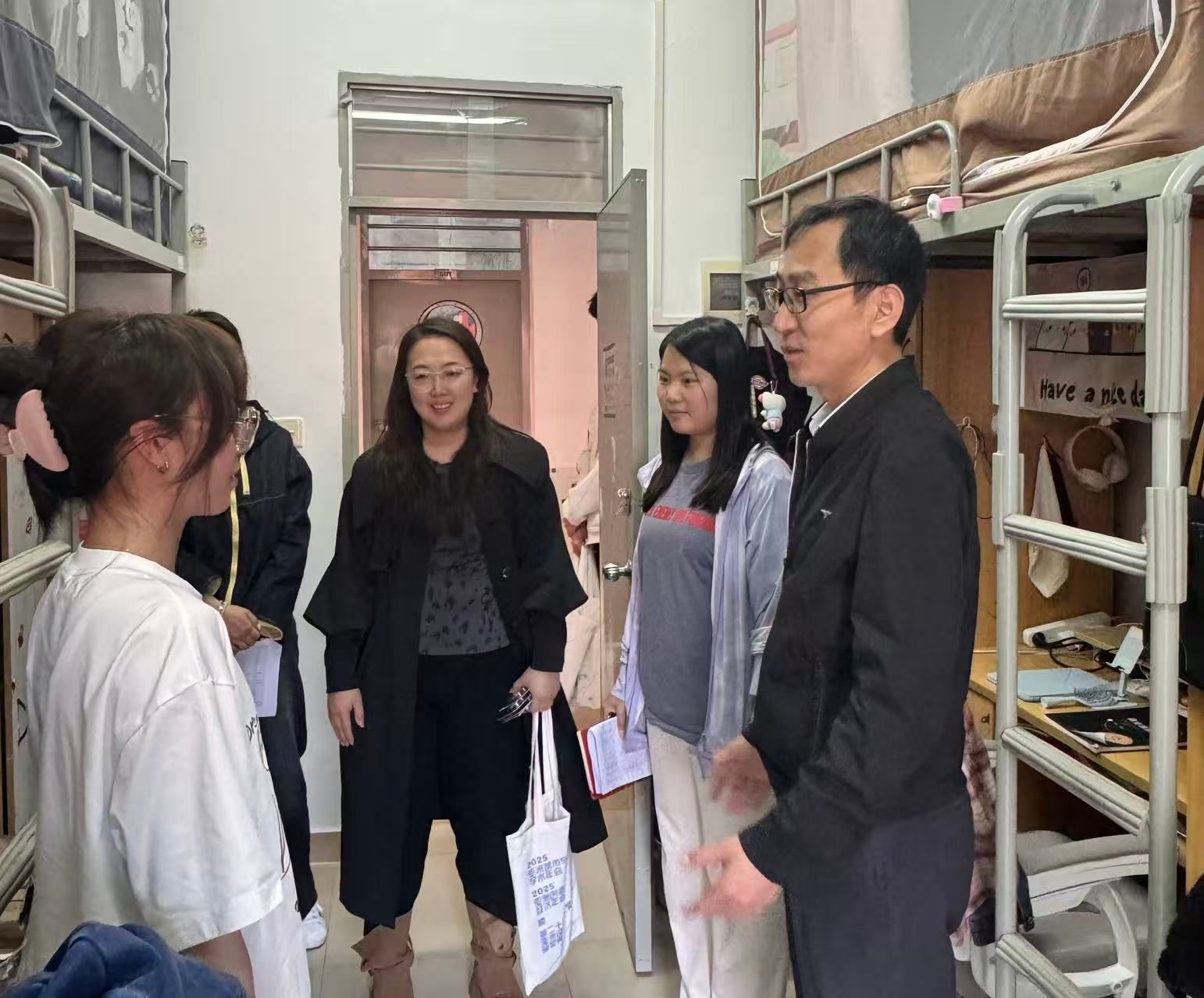 宿舍,是同学们在校园中最温暖的“小家”,也是辅导员走进学生、了解学生的重要场域。各位老师深入各年级学生宿舍,与学子促膝长谈,详细询问其假期生活、返校适应情况,耐心倾听学子在学习、生活、心理上的困惑与诉求,细致排查宿舍用电、消防等安全隐患,叮嘱学子们注意人身财产安全、养成良好生活习惯,切实将学院的关怀与温暖送到每一位学子身边。